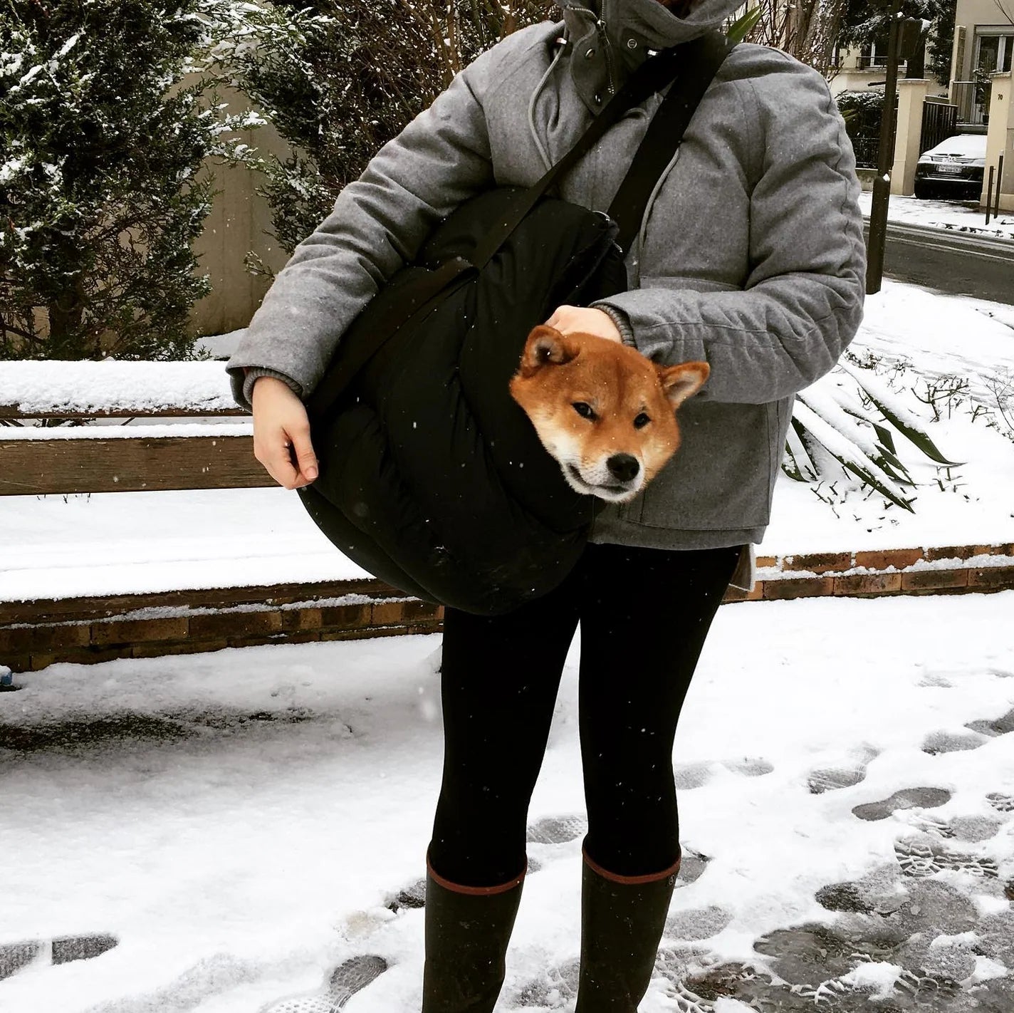 Tout à commencé par un post sur Facebook d'une photo suite à la stérilisation de Hardi. Il neigeait et nous avions utilisé un sac qui trainait dans le placard pour le ramener à pieds de chez le vétérinaire. Arrivés à la maison, on poste cette photo sur le groupe de notre shiba family, et au milieu des messages de bon rétablissement, nous recevons plusieurs questions sur le sac.De là, nos premiers « clients » nous en